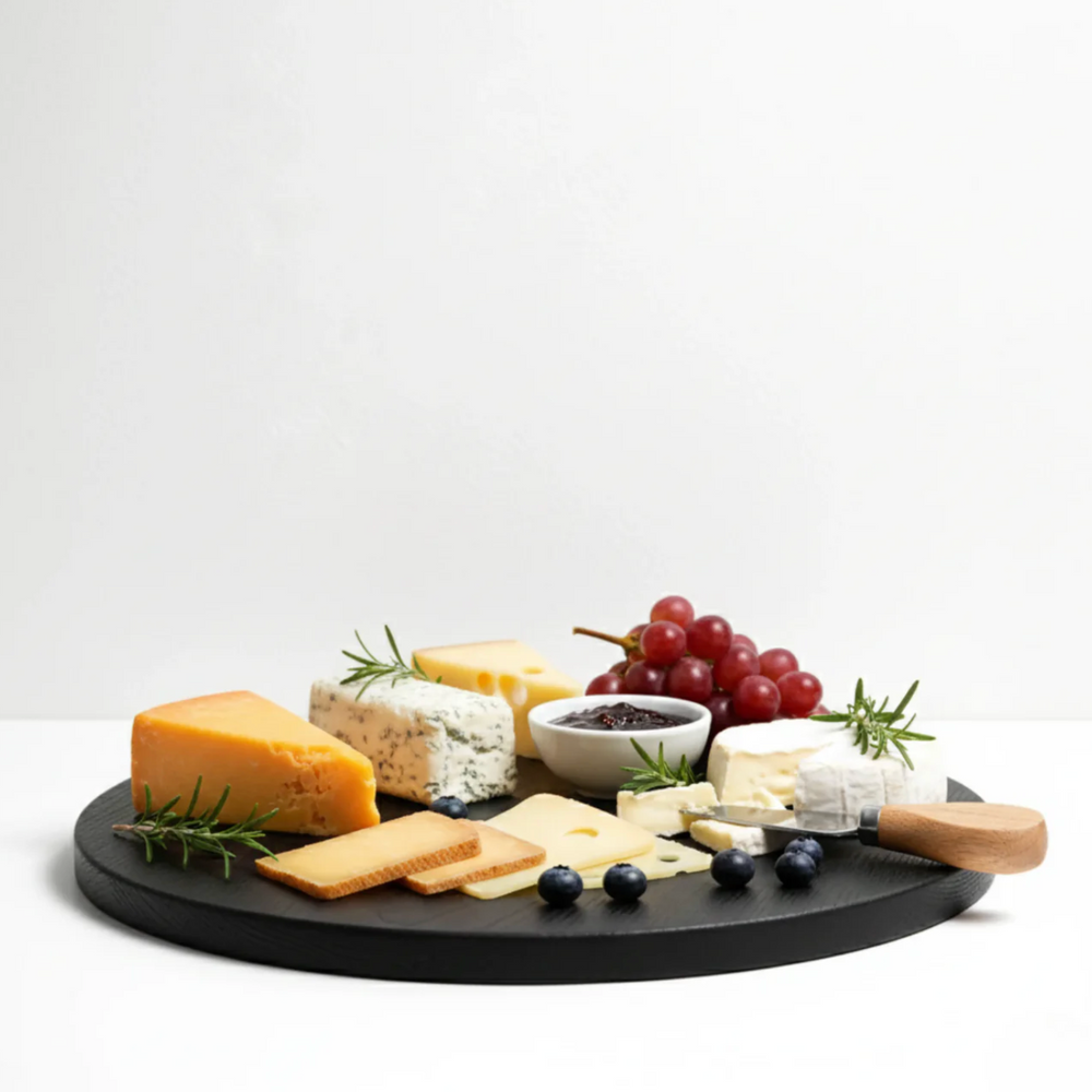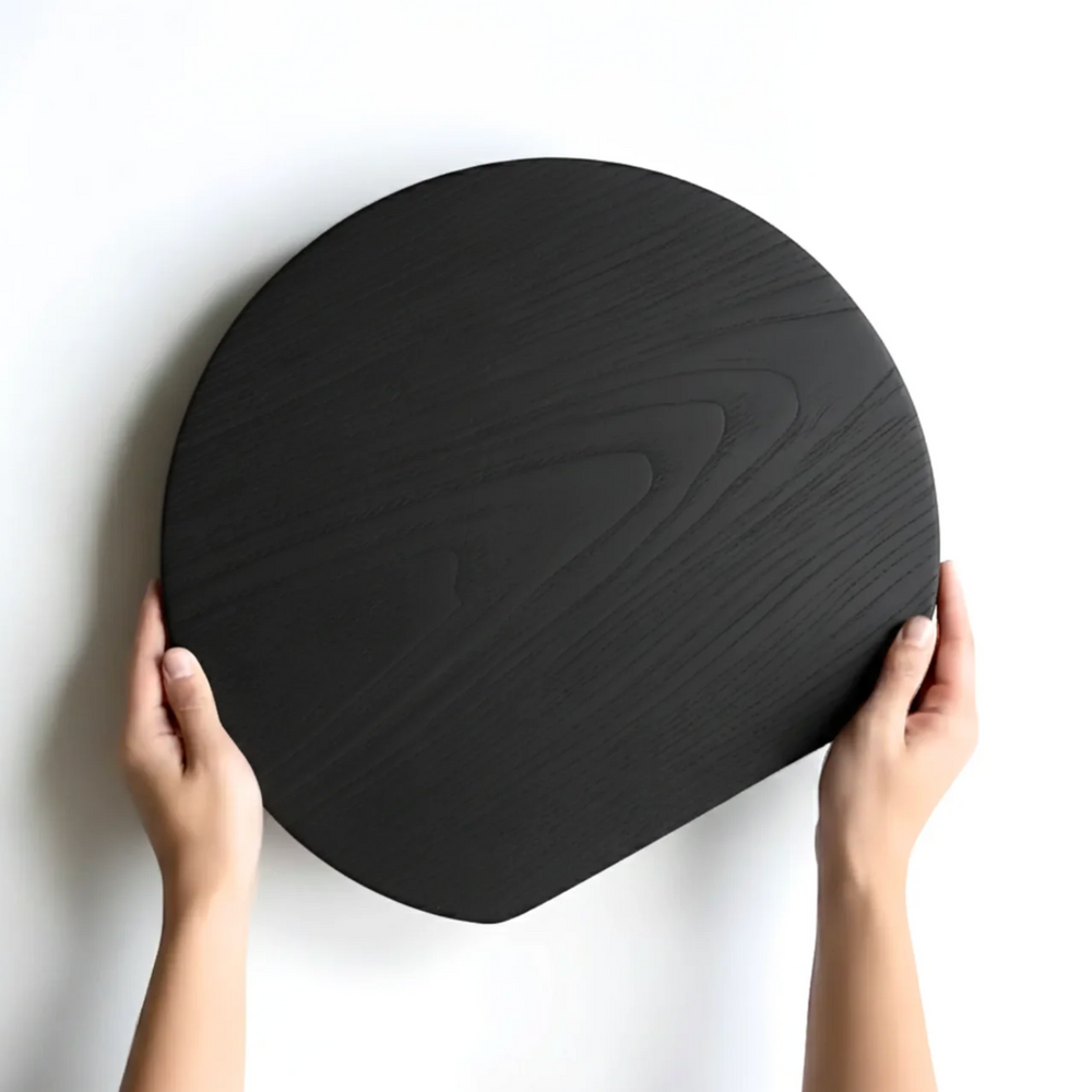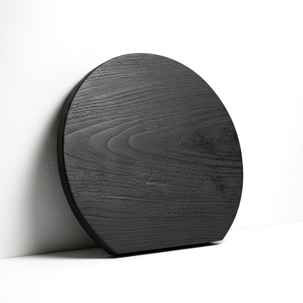The Etsu ("joy" in Japanese) board breaks from tradition with its distinctive round silhouette and unexpected squared-edge detail. At 33cm x 35cm, this shou sugi ban serving board is designed to be seen, a conversation-starting centerpiece that performs as beautifully as it looks.