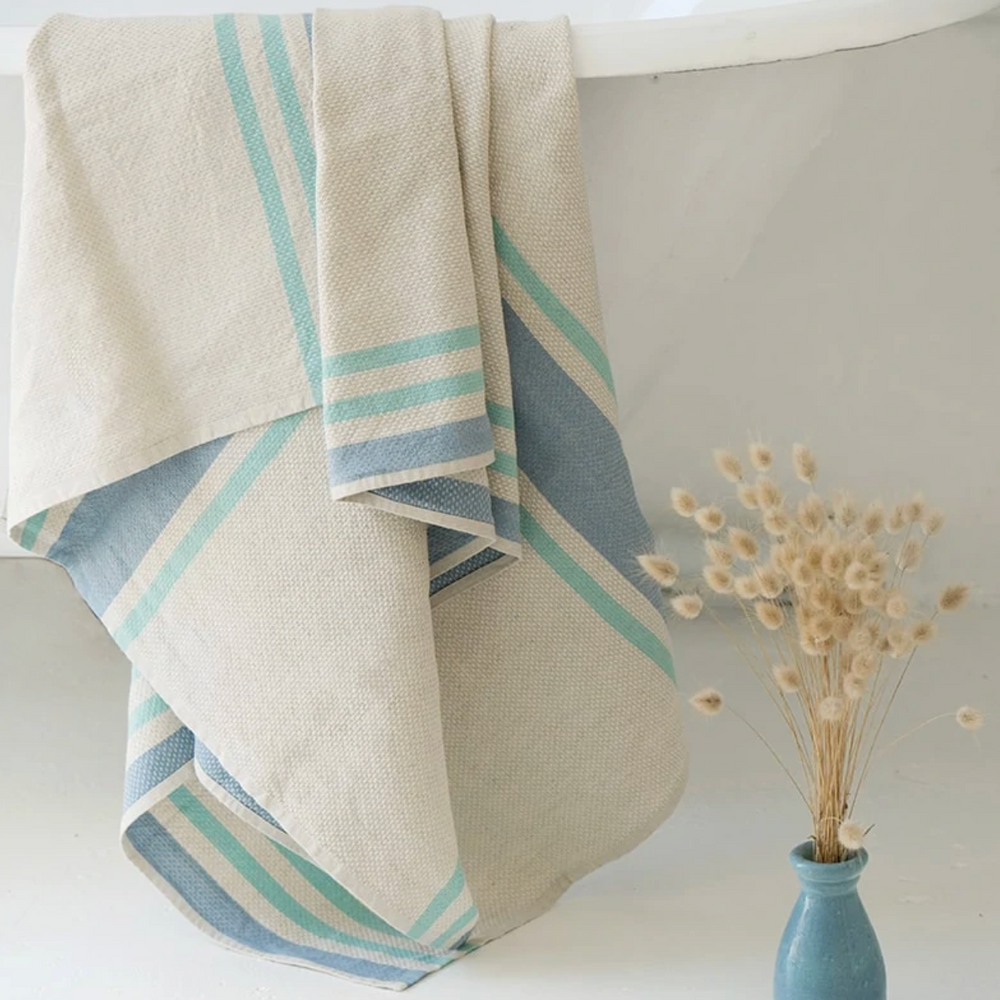 The traditional huck-a-back weave has been used for towelling for generations. Woven with a combination of cotton and linen, creating the best balance between strength, absorbency and durability. Learn more about these two incredible fibres here.