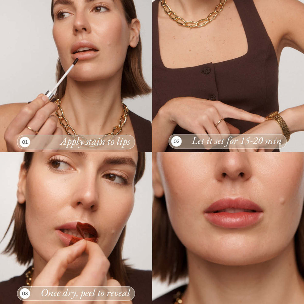 COMPLETE! Optional: Finish with your favourite balm or gloss to hydrate and enhance stain.