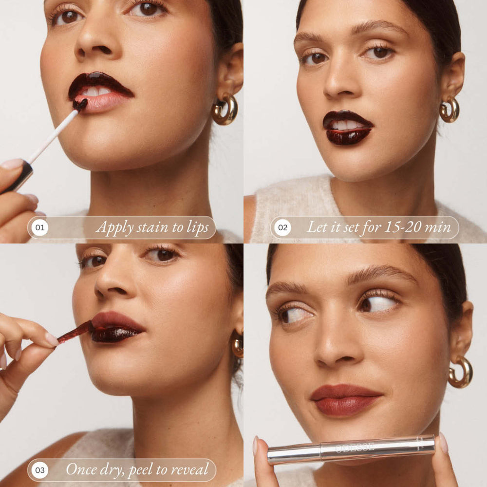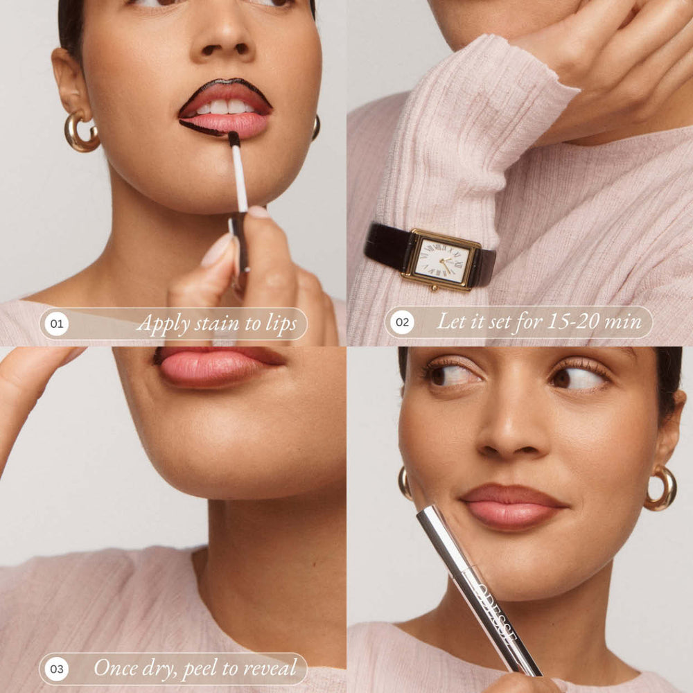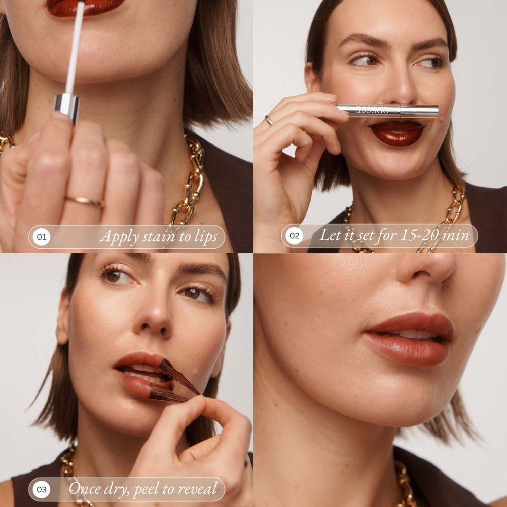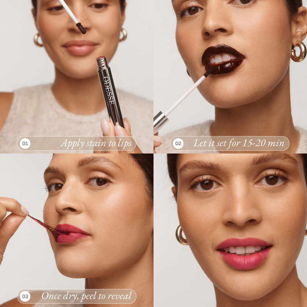 Introducing the Odesse Lip Stain — a semi-permanent, peel-off stain, crafted to keep lips defined from day to night.