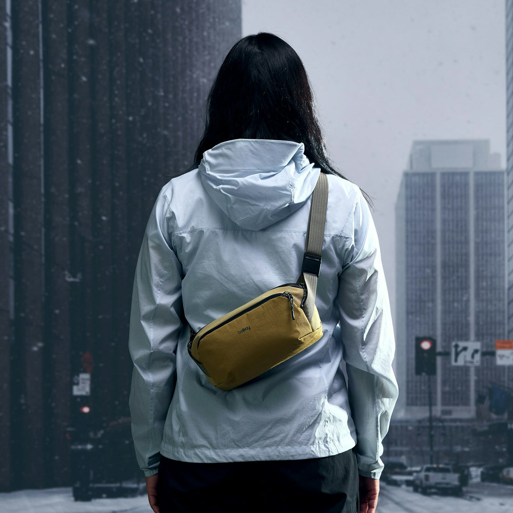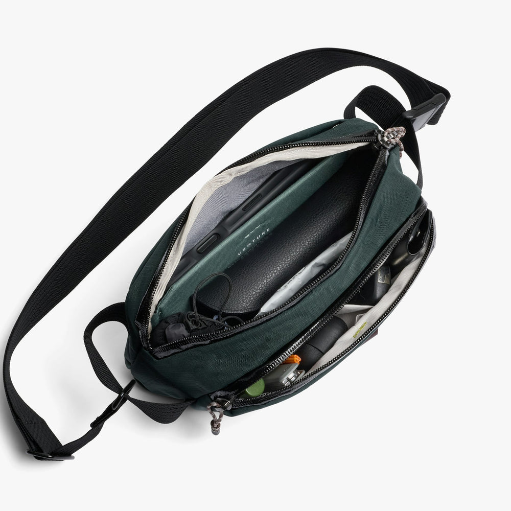 Inspired by the Venture Ready Pack, the front pocket of this sling has an internal divider that helps keep small gear organized and accessible.