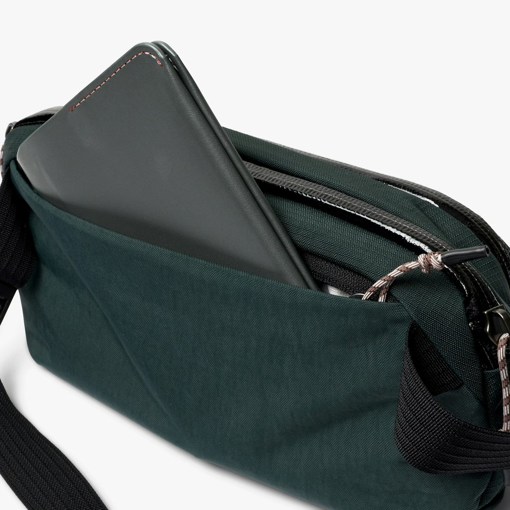 Big bags have laptop sleeves. This little bag has a padded, soft-lined phone sleeve that keeps your device safe on adventures. Plus the low-profile zip pocket on the back sits snug against your body, so it’s the perfect spot to stash a wallet or passport while travelling.