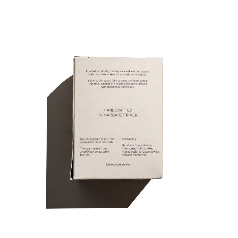 Roasted hazelnuts, crunchy caramel, and our organic milk chocolate make for a classic combination.