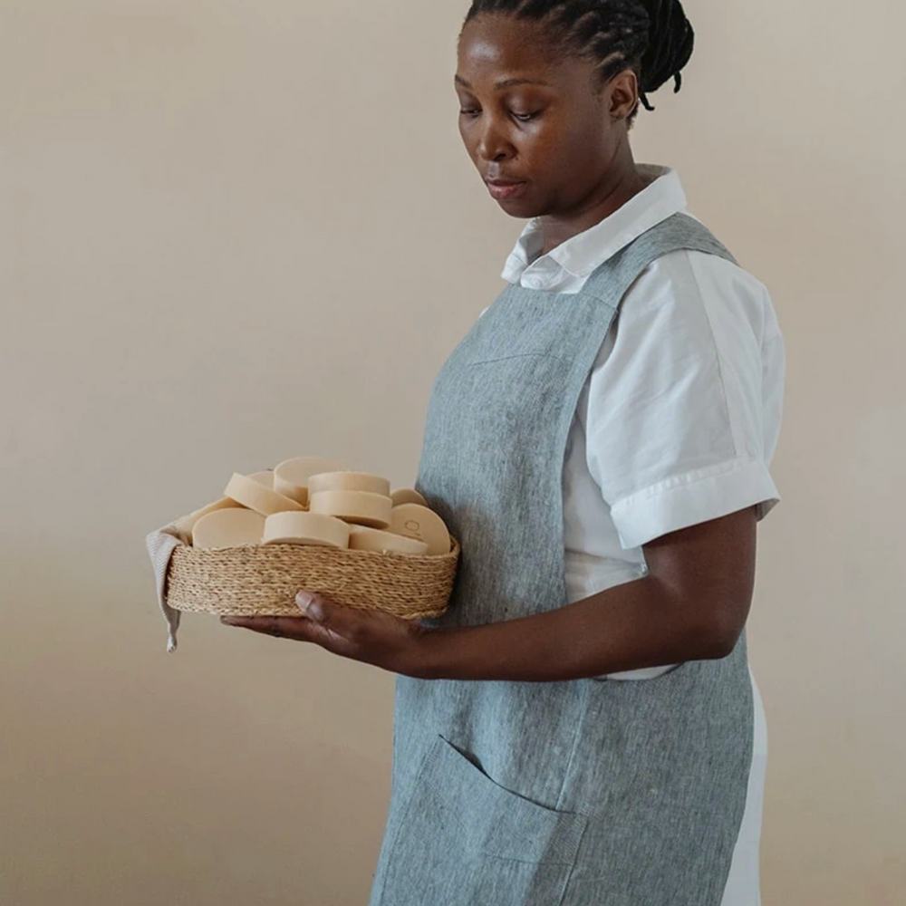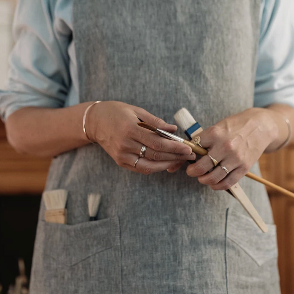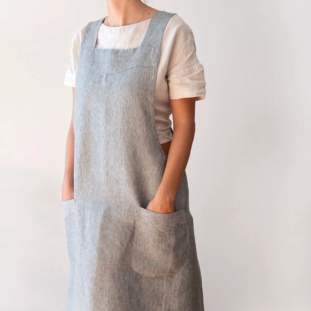 Pure linen apron suited to the studio, days spent in the garden, in the workroom, or at the easel.